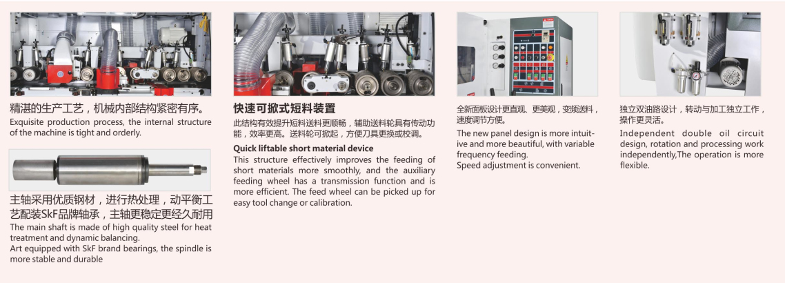 佛山重型四軸四面刨,佛山雙面刨鋸機,木工機械設備,廣東優(yōu)質廠家木工加工機械,廣東雙面刨鋸機 全新面板設計更直觀,更美觀,變頻送料,速度調節(jié)方便??焖倏上剖蕉塘涎b置,獨立雙油路設計,轉動與加工獨立工作操作更靈活。